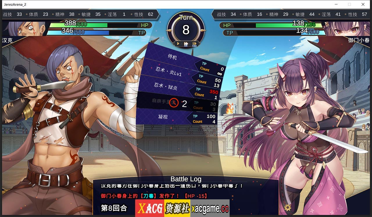 角色养成:透过『训练』与『调教』,奴隶们可提升自己的能力并习得战斗技能。