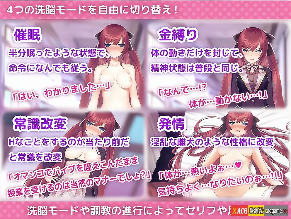 ・调教结束后清除调教中的记忆,调教部分结束。即使抹去了记忆,随着身体被开发,态度也会逐渐改变